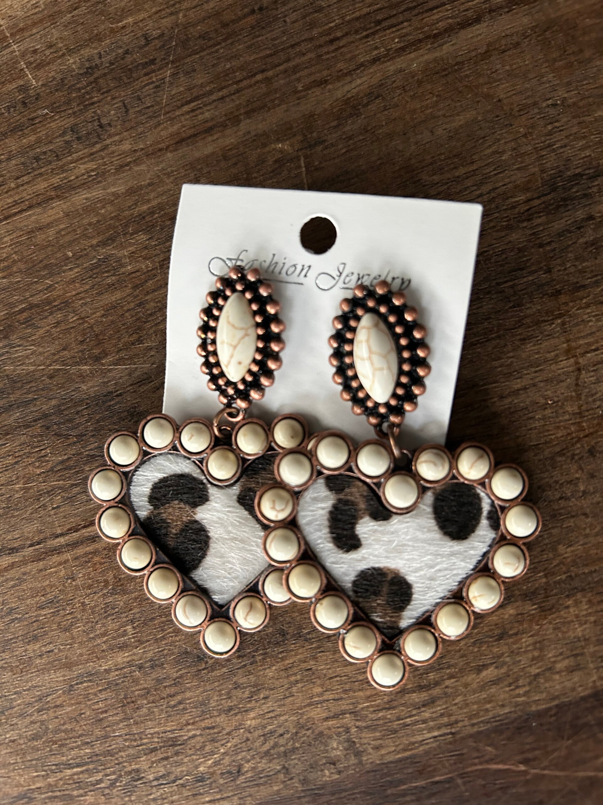 Heart cowprint earrings