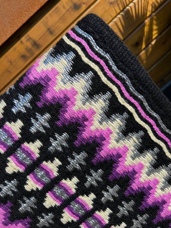 Black with pink/purple/silver pattern