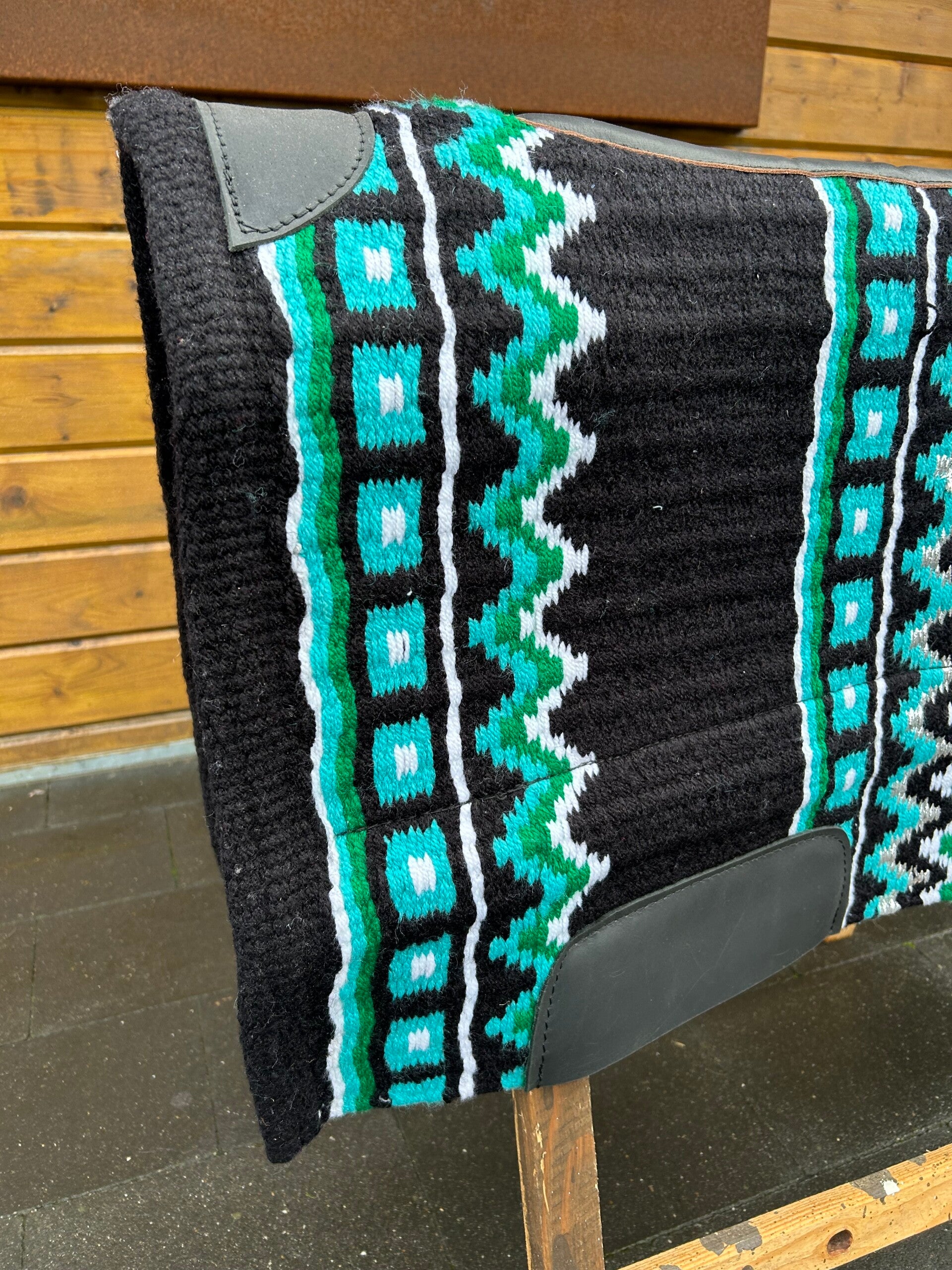 Black with turquoise/green pattern and a touch of silver