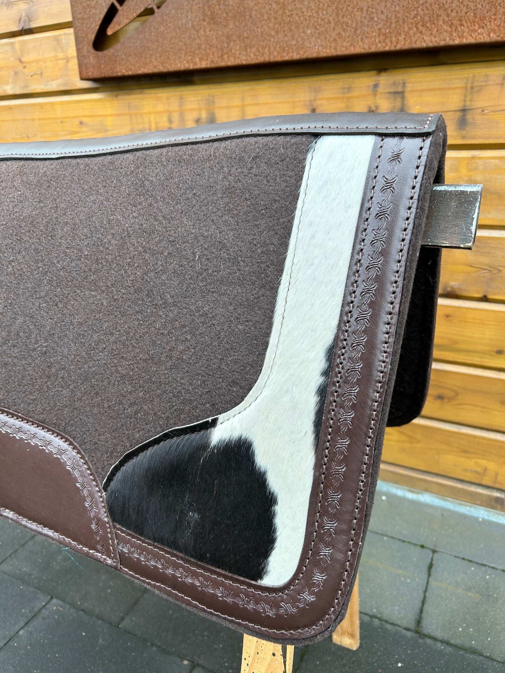 Dark brown pad with cow print